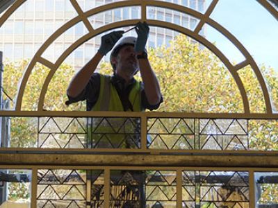 Read more…The York Glaziers Trust have completed the making and installation of a brand new window for Tate Britain's Millbank foyer, designed by Turner Prize winning artist Richard Wright. The window uses only clear handmade glass, and a delicate geometric leaded design set within an elegant metal framework.